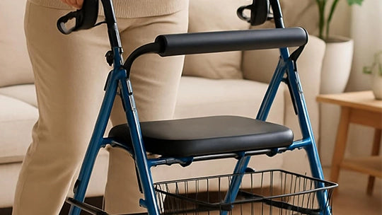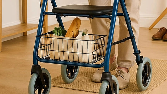 Complete with a seat and basket, this stylish walker in blue finish is ideal for everyday use.