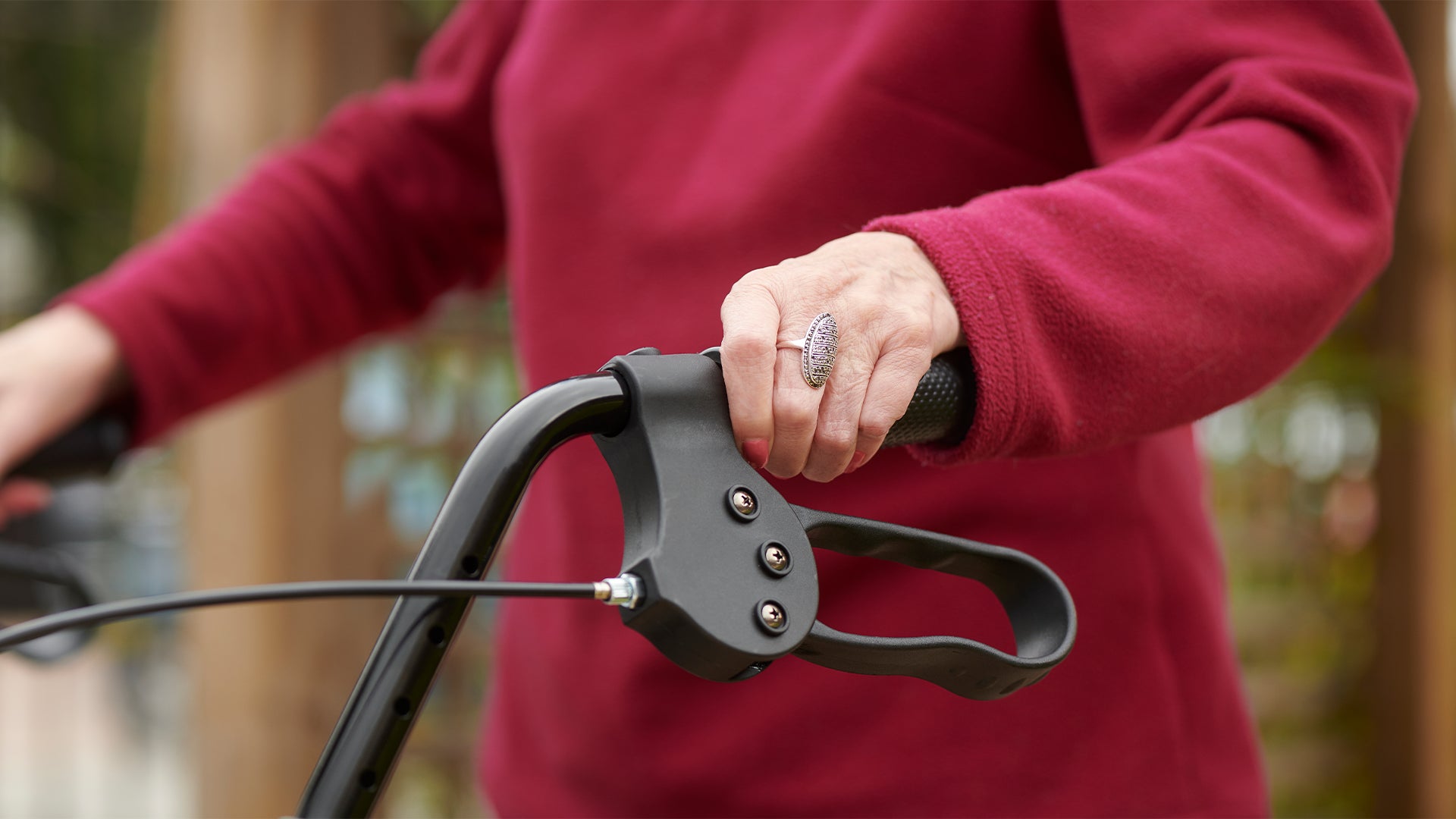Easy squeeze-to-stop and push-down-to-lock system for safe and effortless control.